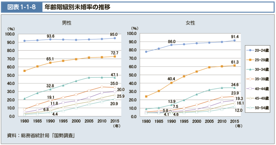 以前、1980年頃に女性は2割は結婚していたものです。男性はあんまり変わりませんけれども。