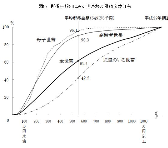 高齢者は、年収250万円で50%になります。シングルマサザーは、200万円で50%になります。ちまたで言われているように、厳しい現状がよく解りますね。