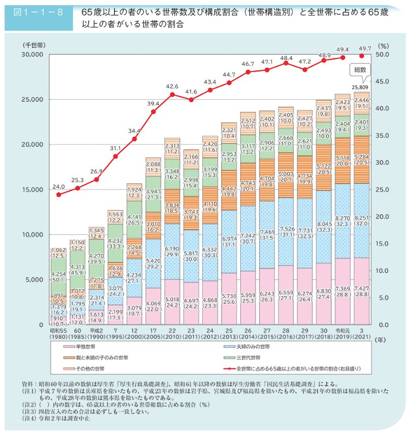 我が国の総世帯数は、2023年10月1日現在で5,621万5千世帯となっており、2018年から増加を続けています。高齢者世帯は、全体の50%に達する勢いです。ということは、全世帯比率で4%、200万世帯が年収600万円を超える高齢者世帯になる計算になります。