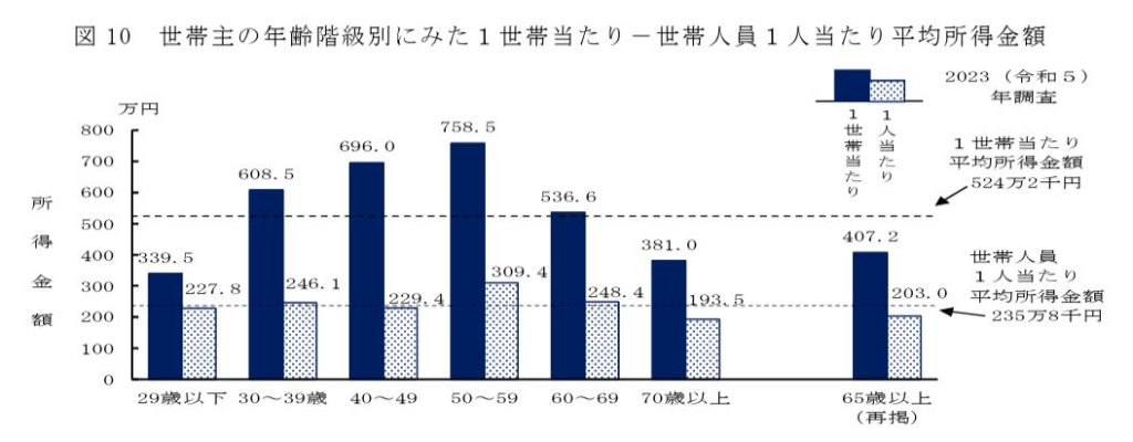 高齢者がいない世帯の年収はこのように出ているので、そこから類推はできます。