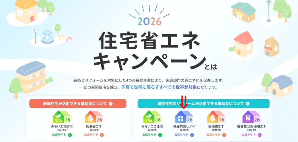 この2026年の住宅省エネキャンペーンのページの窓リノベ制度の概要をご覧下さい。以下の画像から直接リンクを飛ばしていきます。