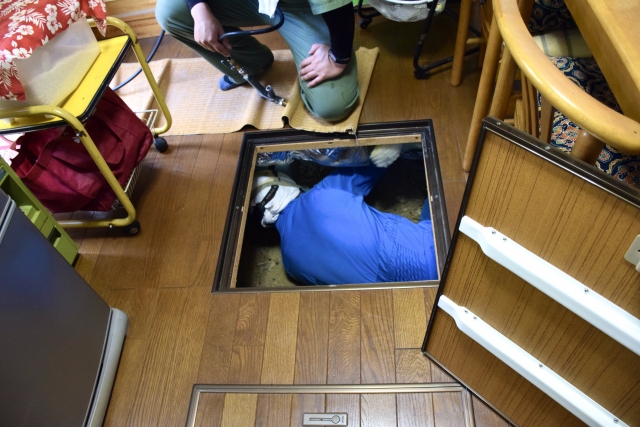 次に、床下の点検です。もちろん専門の技術者の方が良いですが、素人でもOKです。
