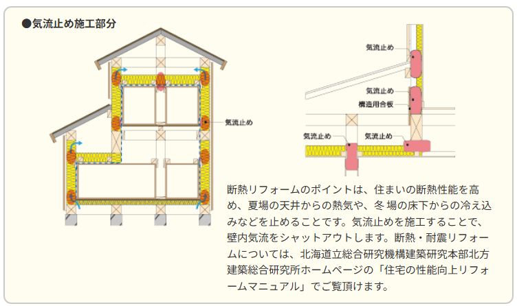 気流止めは、文字通り壁体内に空気を自由に動かさないための、せき止めです。