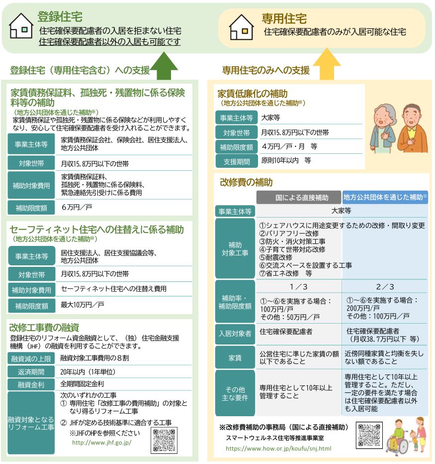 この制度には、登録するだけの住宅と専用住宅があります。専用住宅というのは、これらの要件者のための住宅で、一般には貸さない住宅で、登録だけでは、無料でできます。