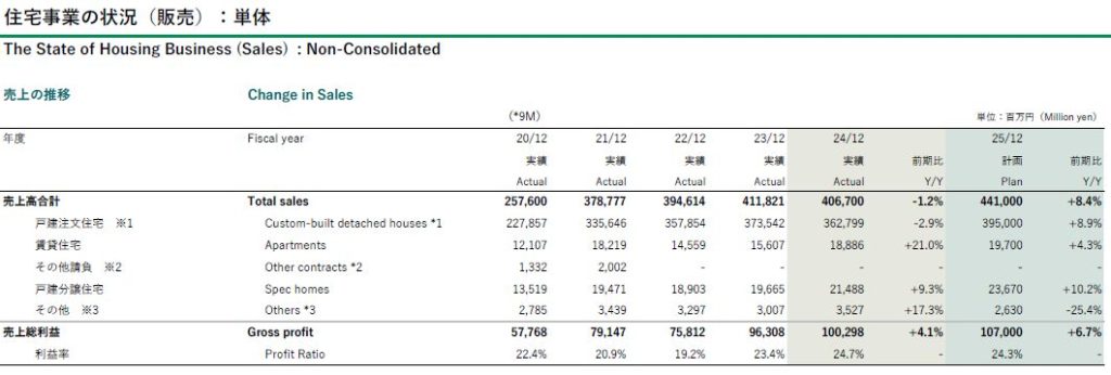 これは現在、国内住宅部門の注文住宅の売上げが、全体の89.2%と約9割を占めているのですが、それでも全体の4,067億円の売り上げで、売上総利益(粗利率)1,003億円だとどうやっても、30%になりそうもありません。