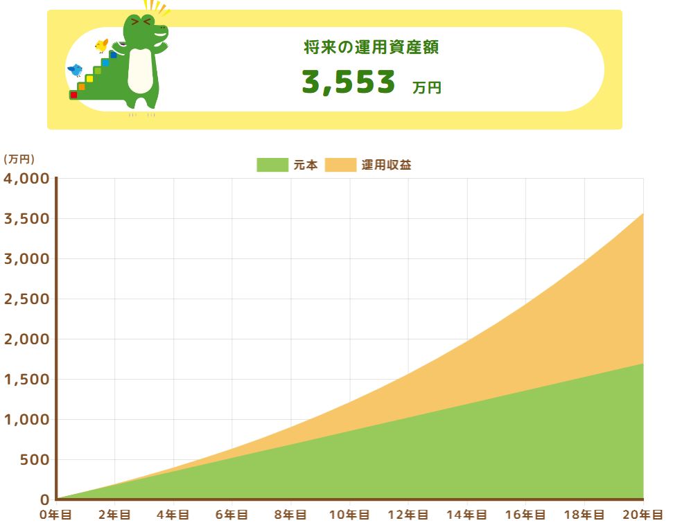 これは、解っていても途中で積み立てを止めたり、取り崩すと効果がありませんから、是非とも定期的にできれば5万円以上、確実に利回りが上がる物を購入する事をお勧めします。