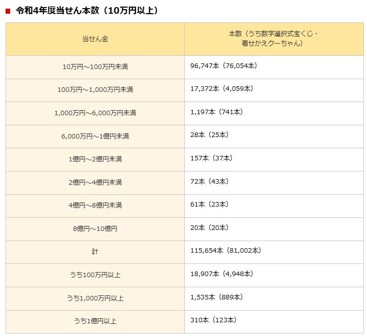 宝くじだけだと、6,000万円以上で年間350名ほど、1,000万円以上だと1,500人ぐらいになります。ちょっと少ないですね。