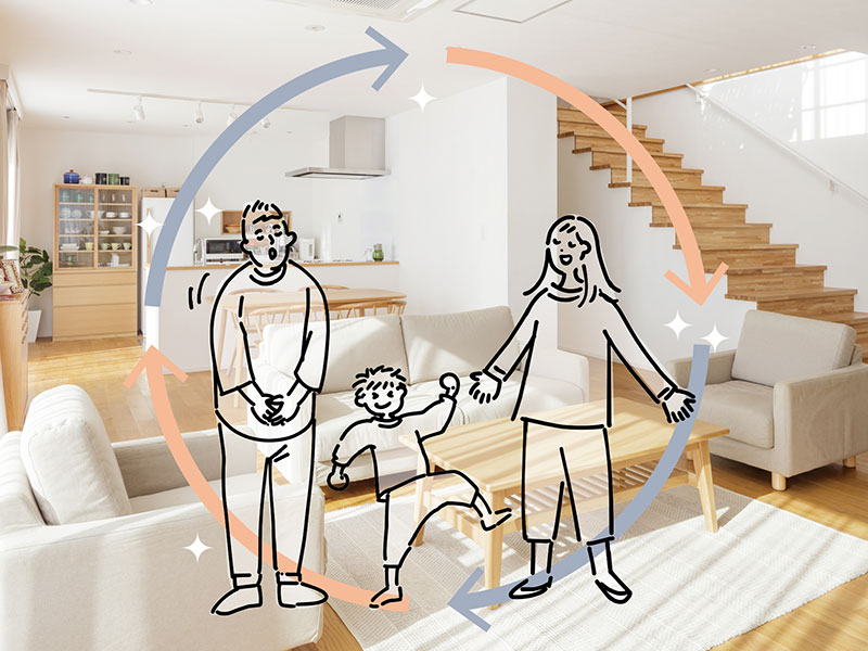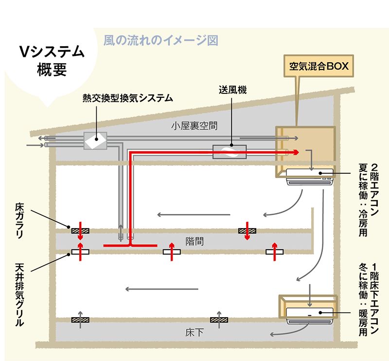 真夏でも真冬でも温度ムラが少なく、家中がいつも快適サラサラ、初期コストもランニングコストも抑えた全館空調「Vシステム」。快適さはもちろん、さらにリーズナブルで家計に優しい全館空調システムです!
