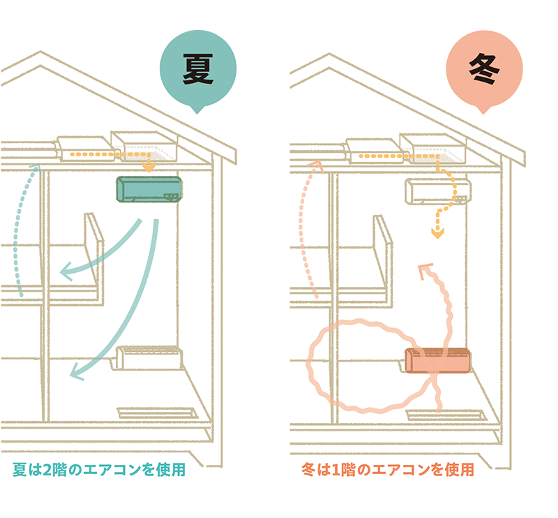 - 冷暖房費が安い!夏は2階、冬は1階。エアコン1台のみ稼働